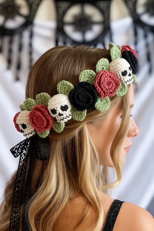 The Skull & Roses Headband – Crochet Pattern is a unique and creative project that brings together two striking elements—skulls
