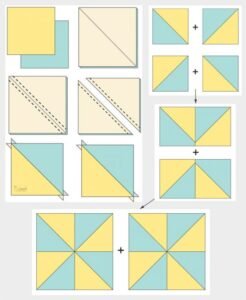Creating a Pinwheel Quilt Block begins with mastering the basic units that make up the design: half-square triangles (HSTs). These triangles are the building blocks of the pinwheel’s spinning effect. By carefully cutting, sewing, and pressing your pieces, you’ll achieve crisp points and a clean finish every time.